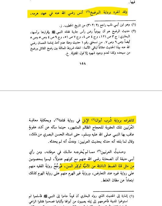 | لمَّا ذَكَر أنس بن مالك لمَّا حدَّث الحجاج بحديث العرنيين، قال: (فلو كان متحفظاً بقوة يقظته لما ساعد ذلك الظالم بما يتخذه حجة في الظلم البالغ، ولذا يجعل أبو حنيفة انفراد مثله في مثل ذلك الحدث الجلل موضع وقفة) [النكت الطريفة ص100]