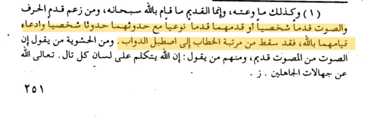 قديم بقدمه، ليس بحروف ولا أصوات) [المقالات ص47] |