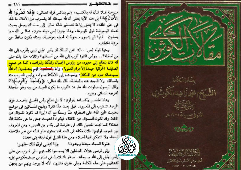 | صح عن خارجة أنه قال: ((فهل يكون الاستواء إلا بالجلوس؟)) فعلق الكوثري قائلًا: ((فانظر إلى هذه الهذيانات في جانب الله سبحانه)) |