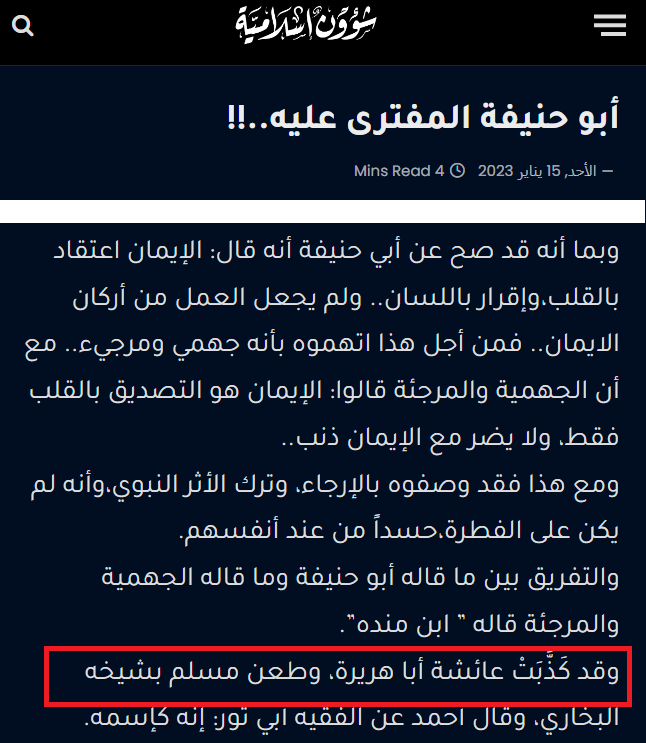 شؤون تكوينية، يشكك بأبي هريرة راوية الإسلام