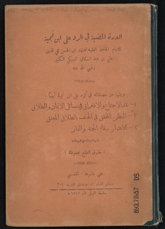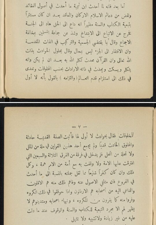 أما بعد فانه لما أحدث ابن تيمية ما أحدث في أصول العقائد ونقض من دعائم الاسلام الاركان والمعاقد بعد ان كان مستتراً بتبعية الكتاب والسنة مظهراً انه داع الى الحق هاد الى الجنة فخرج عن الاتباع الى الابتداع وشذ عن جماعة المسلمين بمخالفة الاجماع وقال بما يقتضي الجسمية والتركيب في الذات المقدسة وان الافتقار الى الجزء ليس بمحال وقال بحلول الحوادث بذات الله تعالى وان القرآن محدث تكلم الله به بعد ان لم يكن وانه يتكلم ويسكت ويحدث في ذاته الارادات بحسب المخلوقات وتعدى في ذلك الى استلزام قدم العالم (والتزامه) بالقول بأنه لا أول للمخلوقات فقال بحوادث لا أول لها فأثبت الصفة القديمة حادثة والمخلوق الحادث قديماً ولم يجمع أحد هذين القولين في ملة من الملل ولا نحلة من النحل فلم يدخل في فرقة من الفرق الثلاثة والسبعين التي افترقت عليها الامة ولا وقفت به مع أمة من الامم همة، وكل ذلك وان كان كفراً شنيعاً مما نقل جملته بالنسبة إلى ما أحدث في الفروع فان متلقي الاصول عنه وفاهم ذلك منه هم الافلون والداعي اليه من أصحابه هم الارذلون واذا حوققوا في ذلك انكروه وفروا منه كما يفرون من المكروه، ونبهاء اصحابه ومتدينوهم لا يظهر لهم الا مجرد التبعية للكتاب والسنة والوقوف عند ما دلت عليه من غير زيادة ولا تشبيه ولا تمثيل .