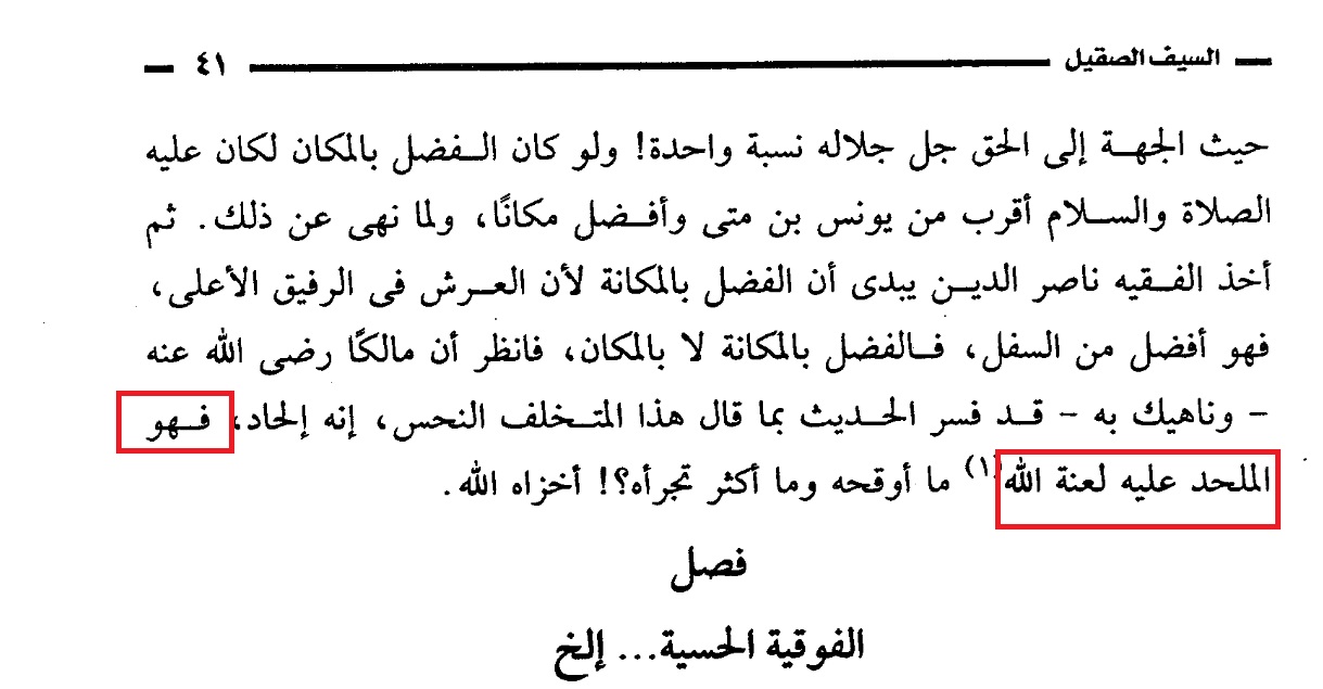 (فهو الملحد عليه لعنة الله) [السيف الصقيل ص41]