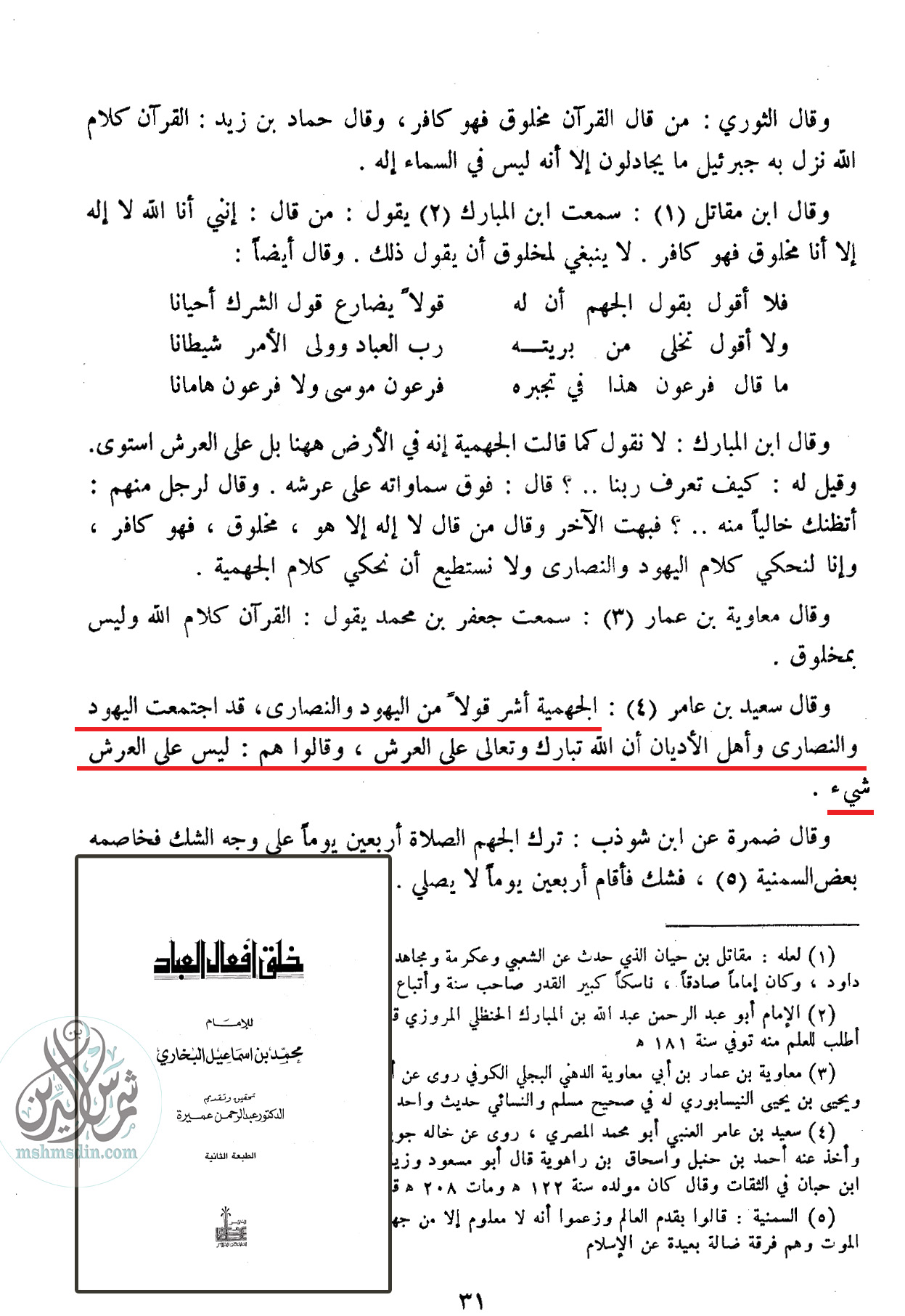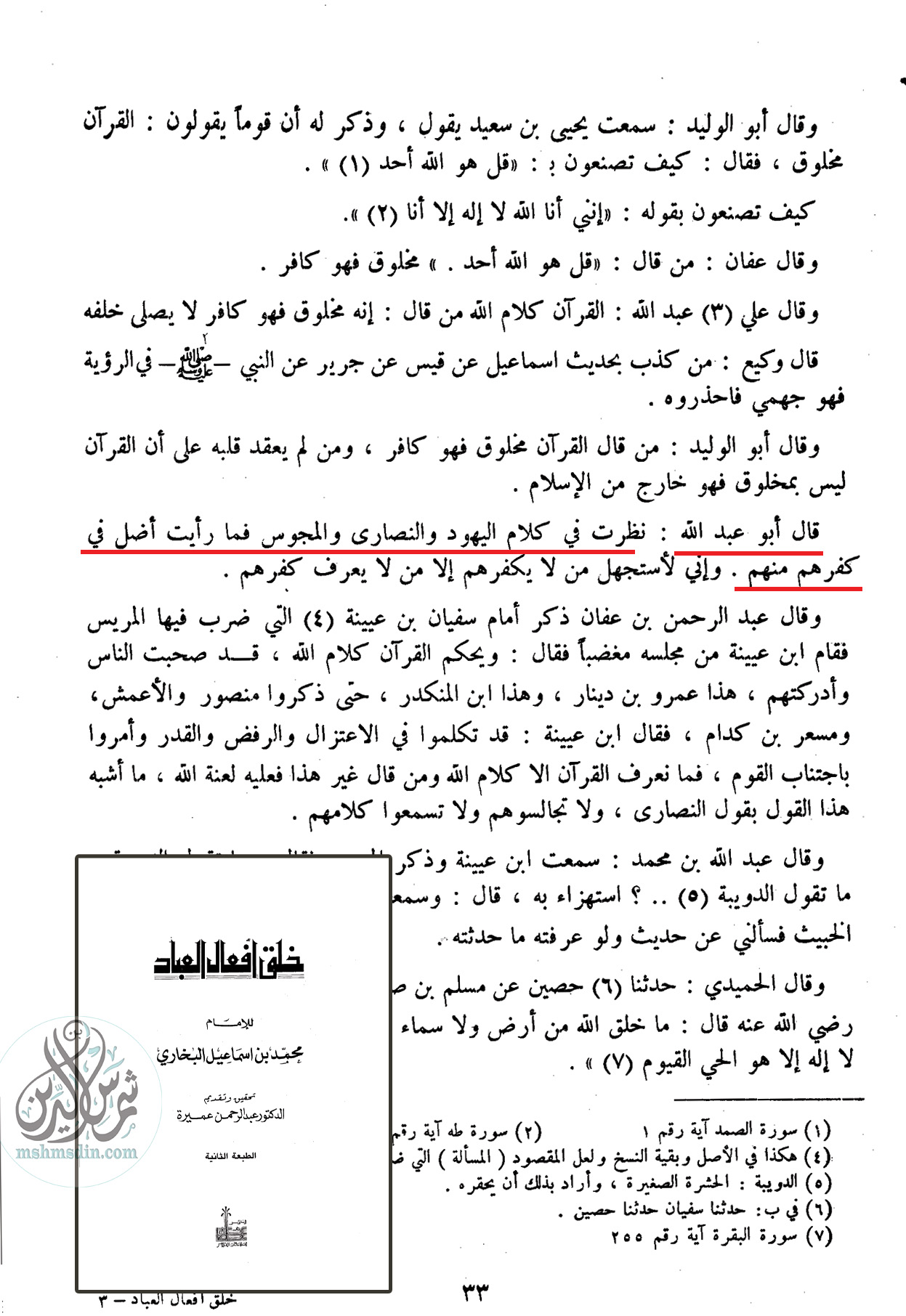قال الإمام البخاري: «نظرت في كلام اليهود والنصارى والمجوس فما رأيت ‌أضل ‌في ‌كفرهم منهم، وإني لأستجهل من لا يكفرهم إلا من لا يعرف كفرهم». [خلق أفعال العباد للبخاري (ص33)]