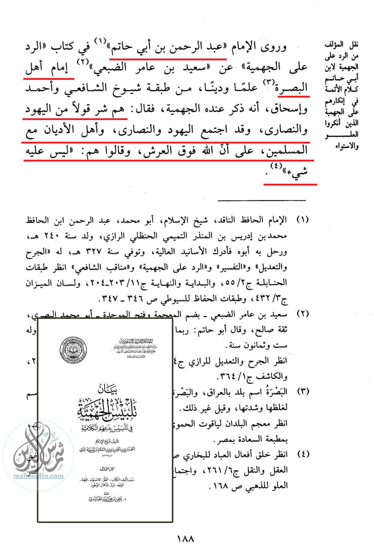 احتجاج ابن تيمية وابن أبي حاتم بكلام الضبعي