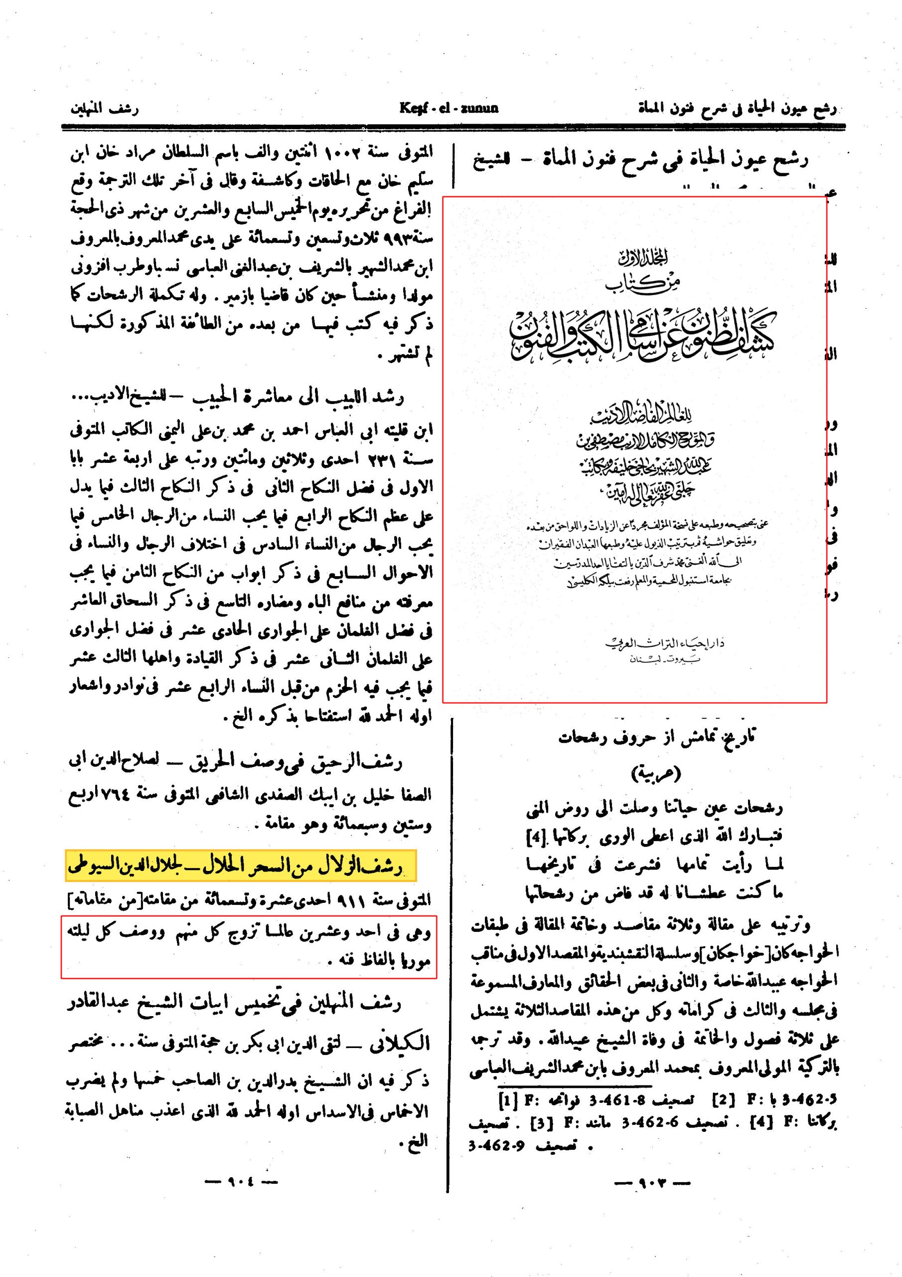 - كتاب في الإسلام الثقافي: سمى السيوطي بـ العالم والمفسر مؤلف رشف الزلال.