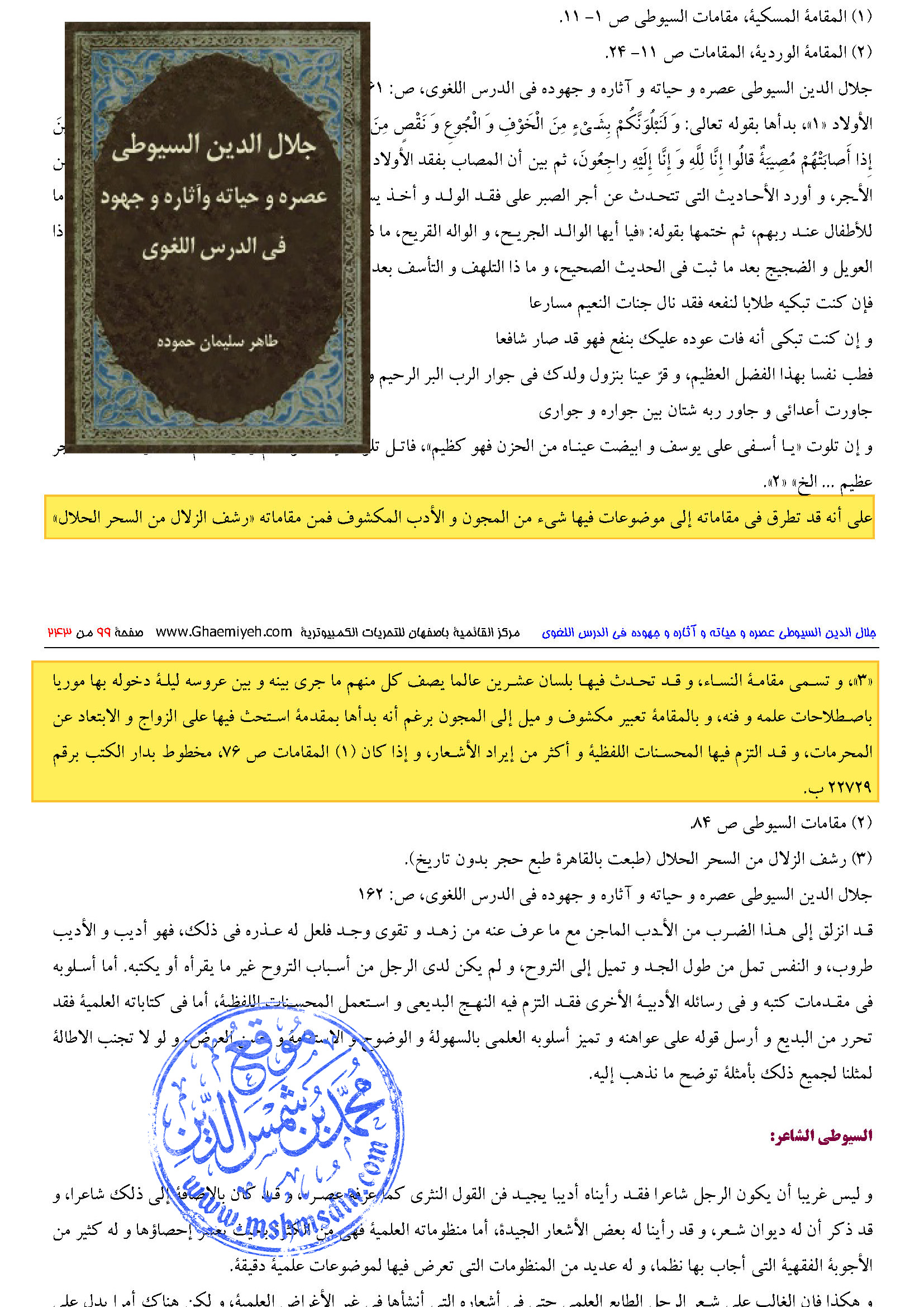 بيان ثبوت نسبة مقامة رشف الزلال من السحر الحلال للجلال السيوطي