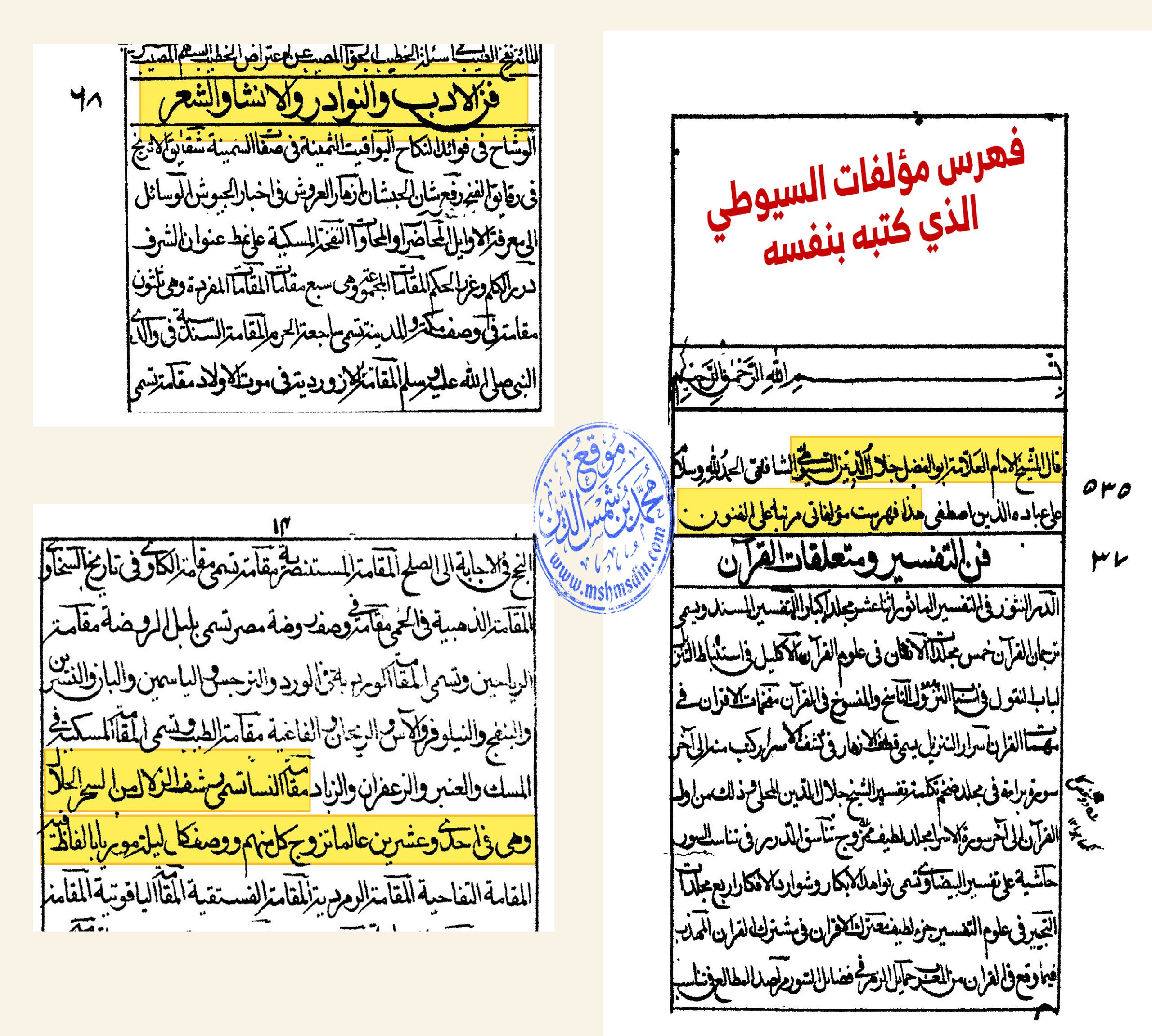 خامساً: الدليل القاطع من فهرس السيوطي وبيان زمن التصنيف