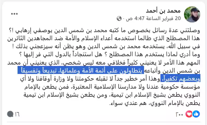 • المنصة: فيسبوك (تعليقات). وهو تعليقق على المنشور السابق