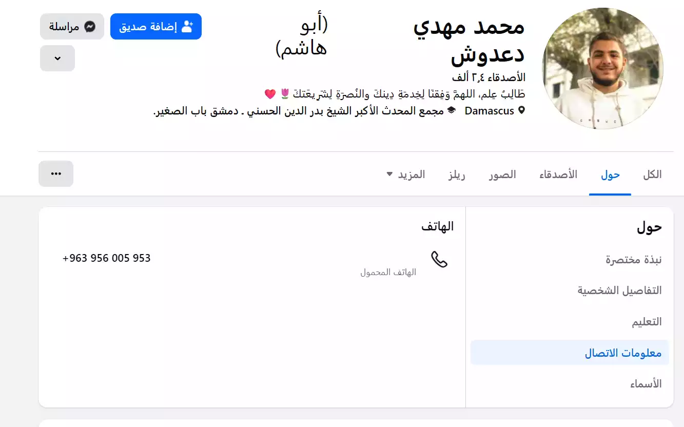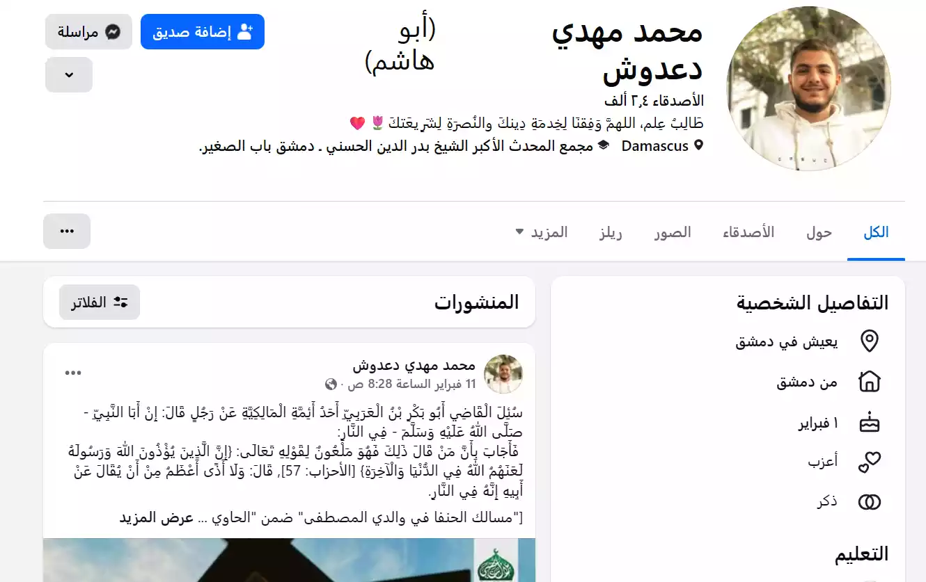 رابط المنشور الأصلي: https://www.facebook.com/mhmd.mhdy.d.dwsh/posts/pfbid0jvPfoKkFdCDqp8NFbeYSbU2r7QhvXRadKFrUG57Mant8M941HjXA85EjB845MKsHl