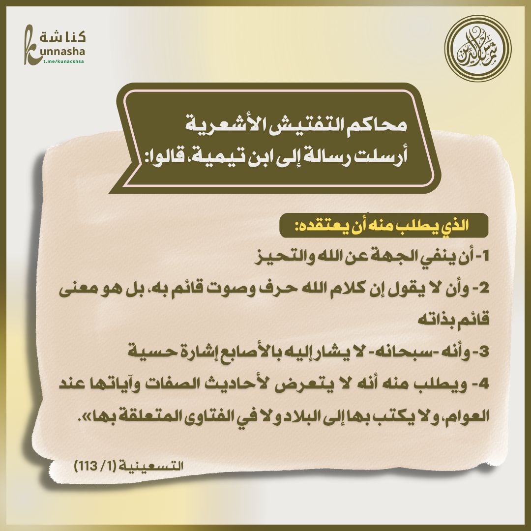Visited 70 times, 1 visit(s) todayمحاكم التفتيش الأشعرية Post navigation تكفير ابن تيميةالأرضون سبع، في كل أرض نبيا كنبيكم
