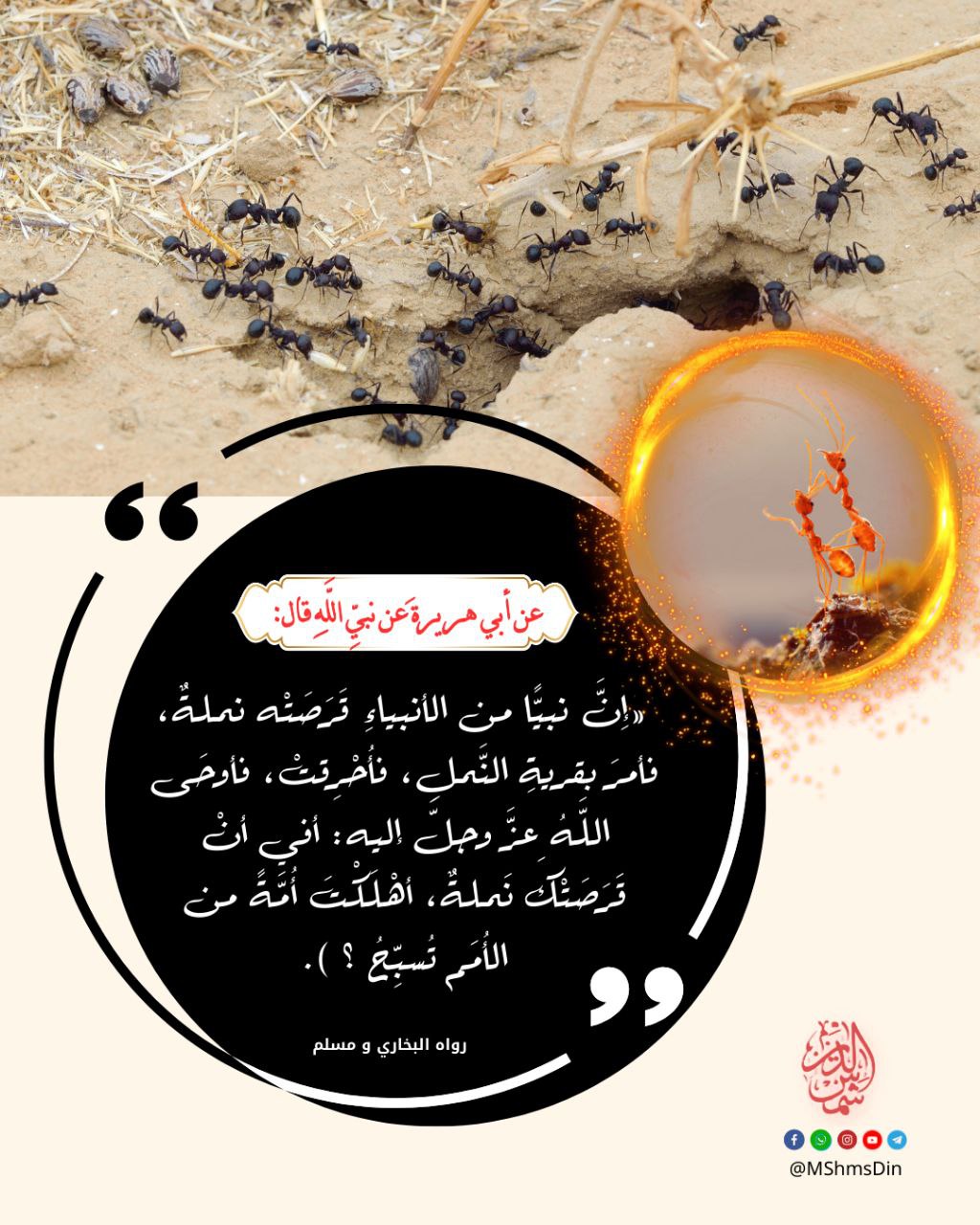 Visited 45 times, 1 visit(s) todayنبيا قرضته نملة فقتل أمة من النمل Post navigation ذكر الله – تفريج الكروبمن يرد الله به خيرا يفقهه في الدين