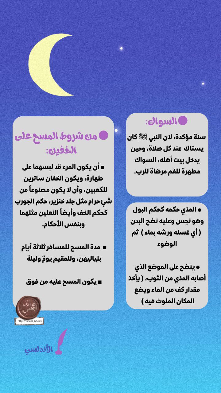 Visited 65 times, 1 visit(s) todayالسواك – المسح على الخف Post navigation الاستجمار – البول – عذاب القبرالوضوء من لحم الإبل
