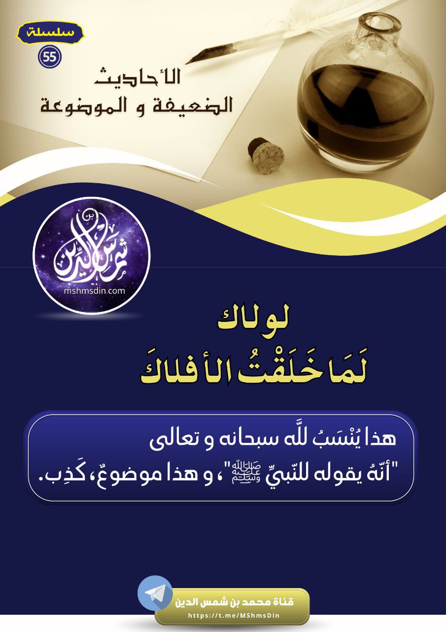 Visited 69 times, 1 visit(s) todayلولاك لما خلقت الأفلاك Post navigation ابن تيمية – النوويالصلاة على النبي (صع سلم)