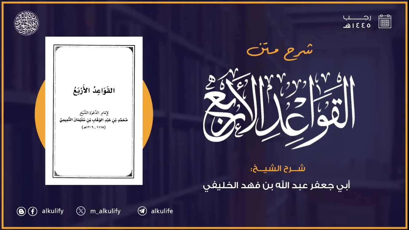 يعتبر متن "القواعد الأربع" من أهم الرسائل العقائدية التي وضعت ضوابط دقيقة للتفرقة بين التوحيد والشرك، حيث يؤصل لكون العبادة لا تصح إلا بالتوحيد كما لا تصح الصلاة إلا بالطهارة. ويأتي هذا الشرح للشيخ عبد الله أبو جعفر الخليفي استكمالاً لمنهجه في التدريس وما قرره سابقاً في شرحه لمتن "الأصول الثلاثة"، حيث يعمد في هذا المجلس إلى تعضيد المادة العلمية وبيان سلف المصنف فيها، مع حل الإشكالات المثارة حول فهم هذه القواعد وتطبيقها في الواقع العلمي والدعوي.